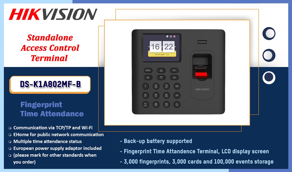 • 3,000 fingerprints, 3,000 cards and 100,000 events storage